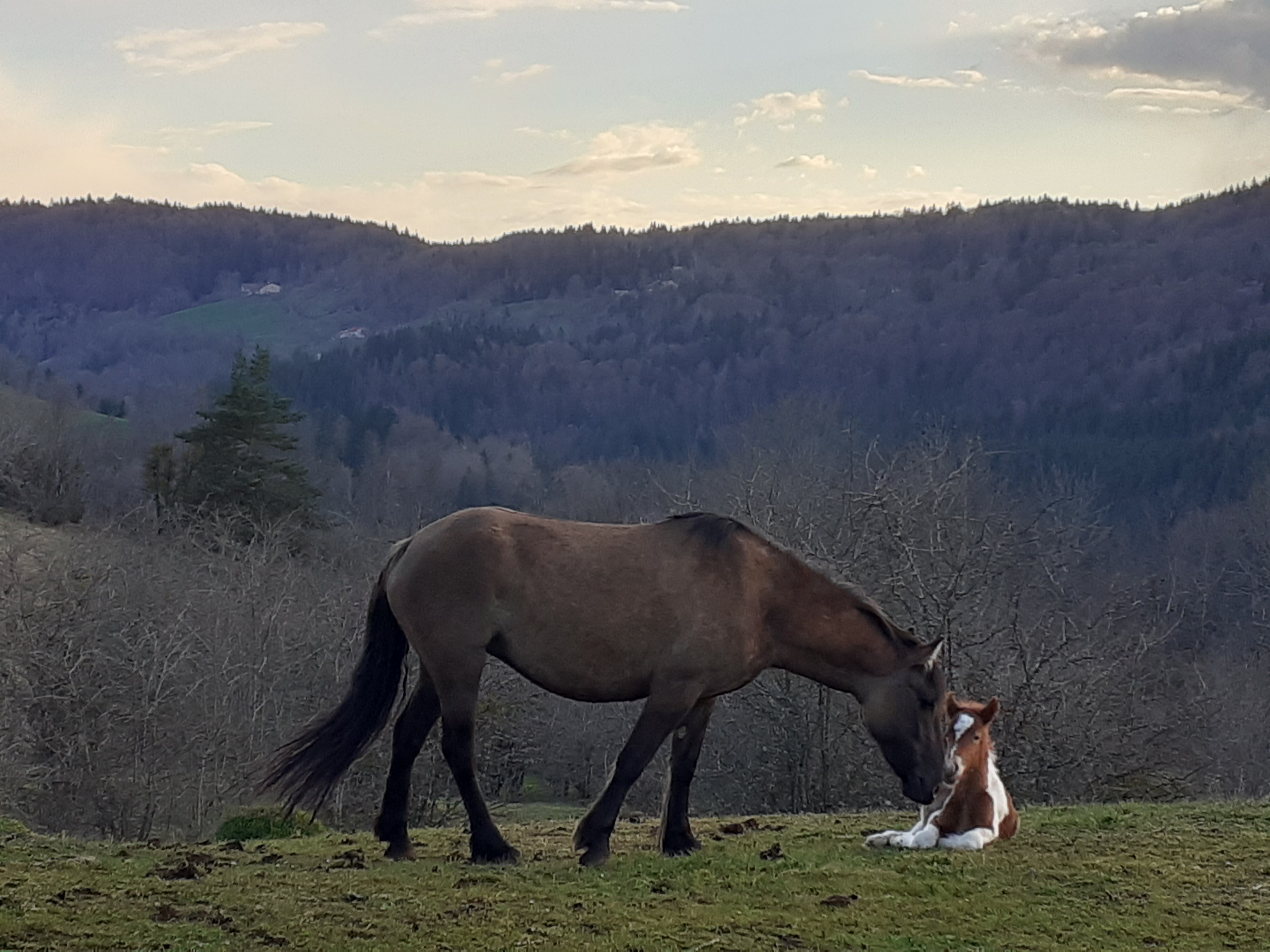 Côté « élevage », je ne peux également qu’observer à quel point les chevaux nés au sein du troupeau ou l’ayant rejoint au plus jeune âge, sont intimement liés à leurs congénères (principalement ceux du même âge), protégés par les aînés, et tout à fait au clair en terme de codes sociaux. Je pense qu’il est important de laisser les jeunes avec leurs mère au moins une année, deux, sinon plus. Si le troupeau est suffisamment riche en terme de nombre, d’équilibre, de stabilité, le poulain est rapidement en lien avec les autres membres, et s’autonomise naturellement.